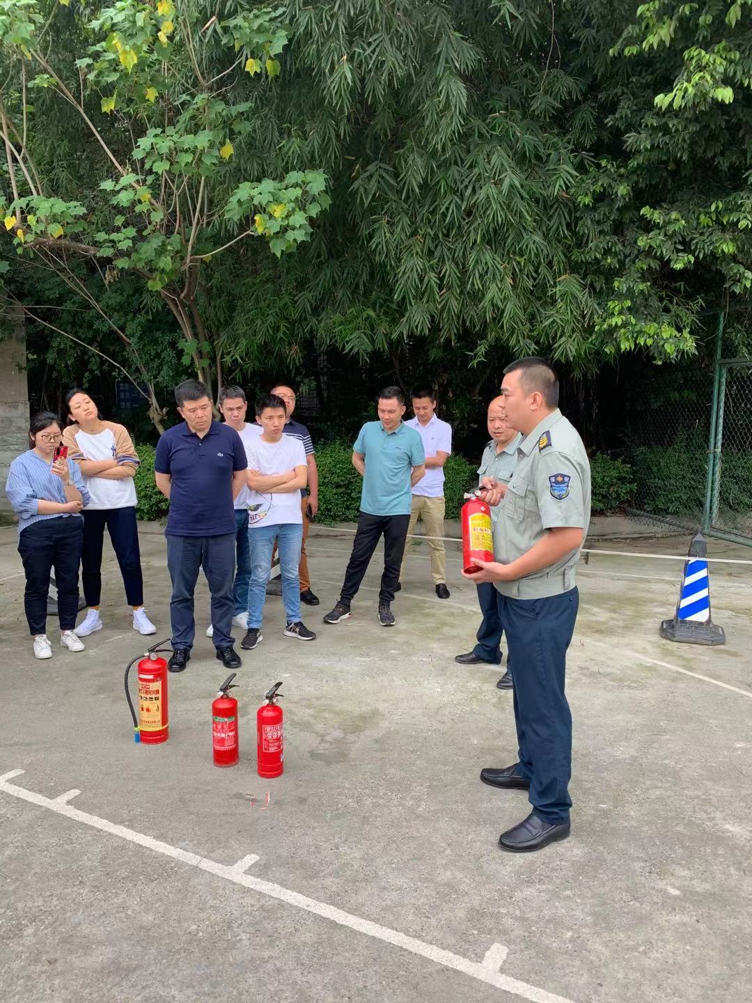 此次培训工作由人南校区保卫科组织实施,金安物业工作人员为参训企业人员讲解了灭火器具的使用方法和注意事项。随后,在工作人员组织下,参加培训人员对灭火器具进行了实际使用操作练习。